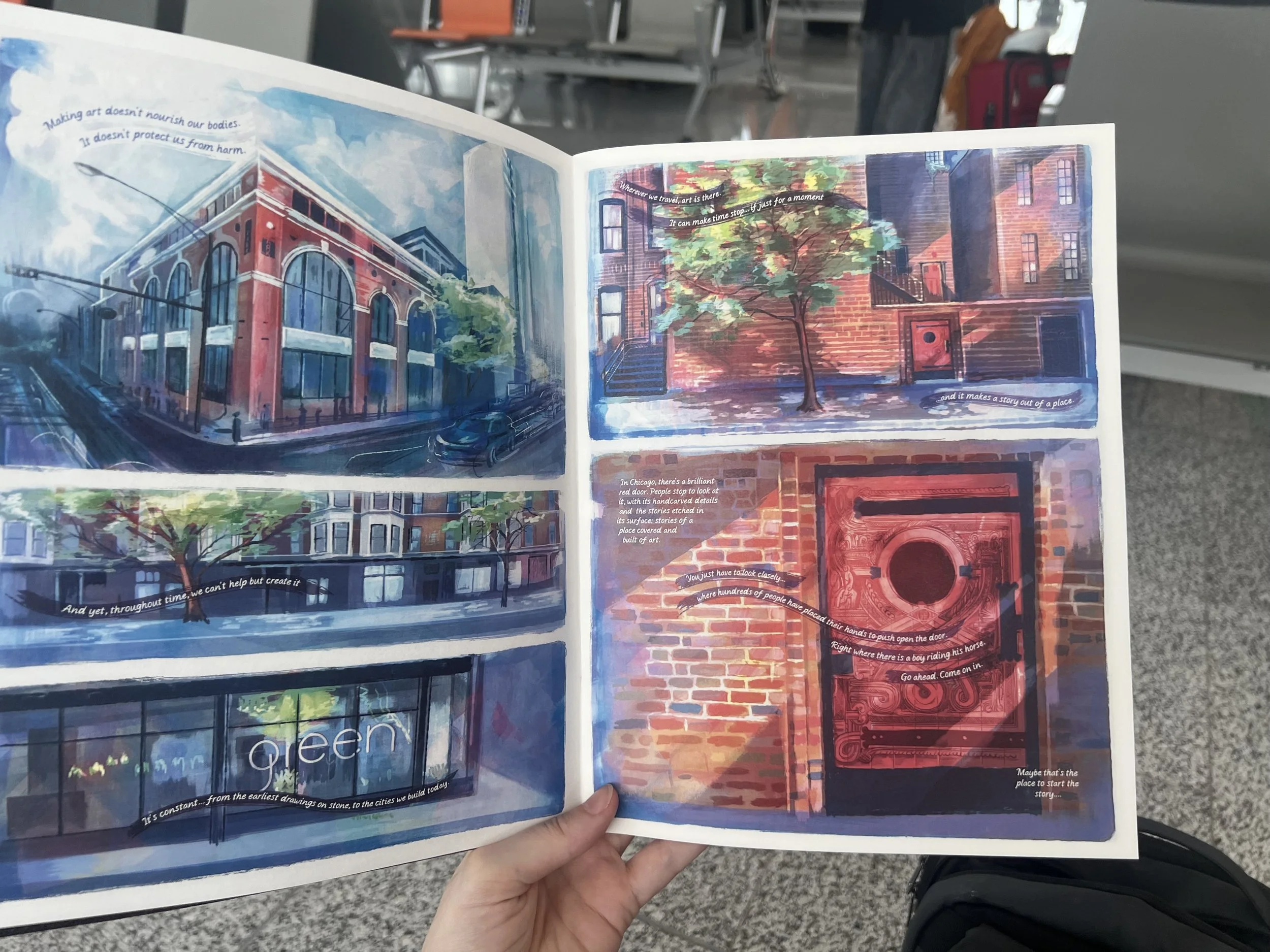 In her art career, she has been drawn to comics as a temporal, narrative-based art form, realized by reading through it rather than seeing it as a single "art object." She became especially drawn to Edgar’s philosophy on art. He paid little attention to the difference between fine art, applied art, and design. He simply made it his own, creating work that was functional, aesthetic, and often existed outside the elite market or in public spaces and private homes. Miller was influenced by the idea of a Gesamtkunstwerk – “a total work of art,” a world within and made of a work of art. Her graphic novel created in collaboration with Edgar Miller Legacy and originating from a residency with Art on Sedgwick, is her artistic interpretation of that spirit.