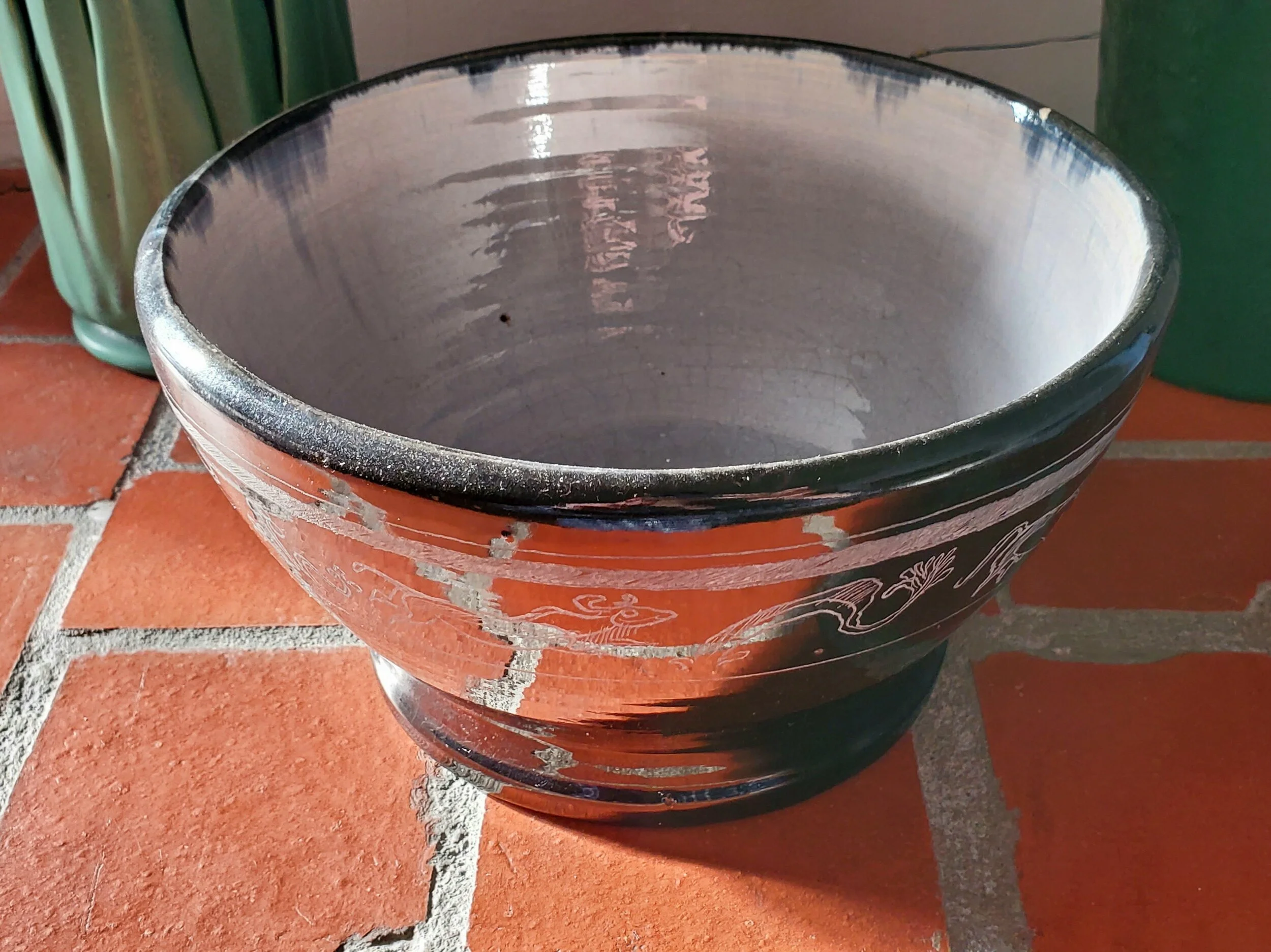 Originally the bowl and the other one like it were part of the collection of artist-designers Robert and Eileen Gatechair, who were students of László Moholy-Nagy at Chicago's New Bauhaus, sometime in the early 1940s. They could have known Miller through his occasional acquaintance with their teacher and the school, or through some other less obvious connection, such as being mutual friends in the artistic and cultural groups of Chicago. Certainly collecting an Edgar Miller-designed artwork was less rare in those days, when he was more well known in the local art and design community of the time.