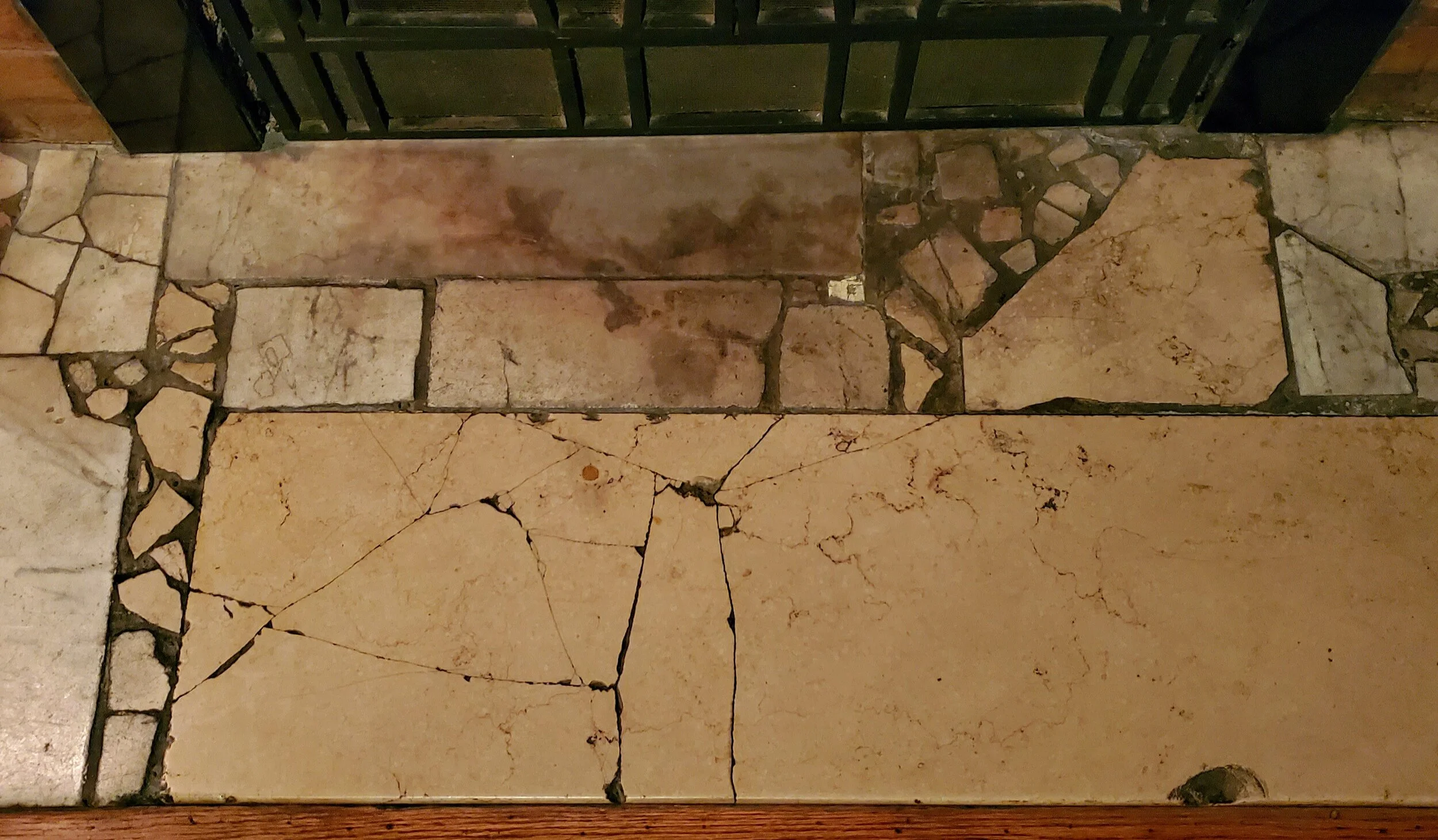 Port Room hearth - Edgar Miller - c. 1930 - broken marble tile details