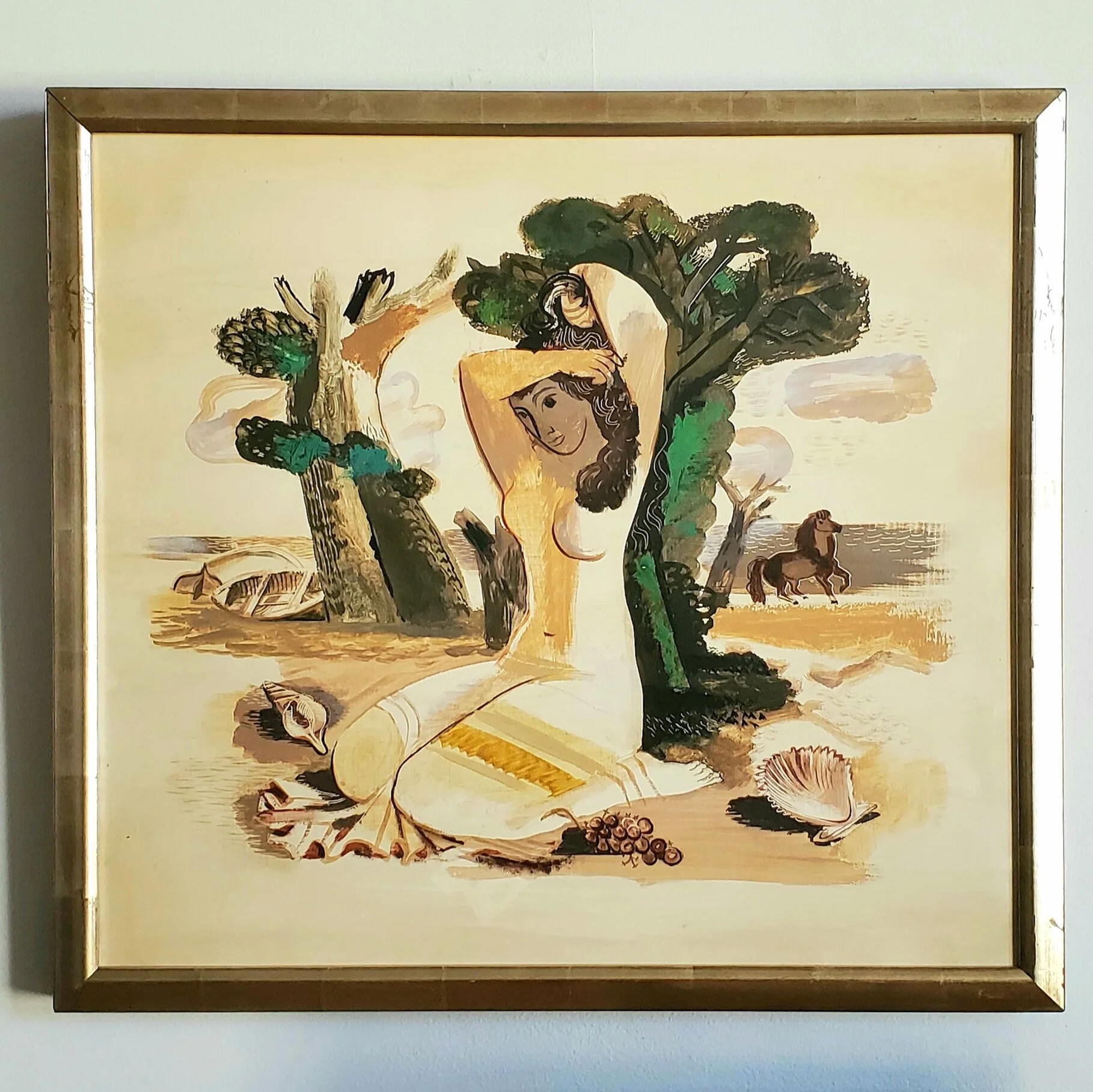 Four panel painting set of “Beach Scenes” produced for the Tavern Club Main Lounge - Edgar Miller - 1938 - Edgar Miller Legacy